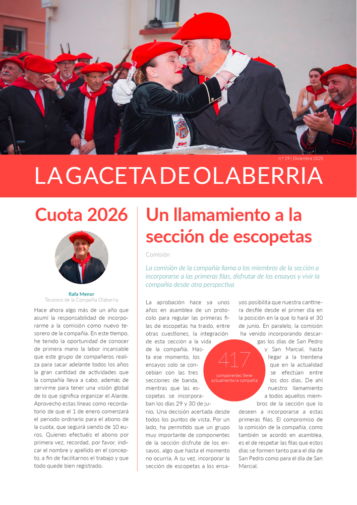 Es el número 29 de la colección La Compañía Olaberria acaba de editar el nº 29 de La Gaceta de Olaberria, con información, entre otras