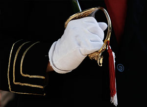 … en los sables de los mandos de la Compañía Olaberria lucen unos pompones con los colores sanmarcialeros?